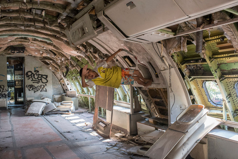 Au coeur de la capitale Thaïlandaise, la carcasse d’un Boeing 747 sert d’abri à deux famille de réfugiés Birmans. Moyennant quelques centaines de Bath, une jeune adolescente, cigarette mentholée à la main, ouvre le cadenas d’une maigre clôture en bois et vous laisse pénétrer sur son territoire. Les familles ont bien compris le potentiel touristique de leur abri de fortune, un selfie dans un cockpit vaut bien quelques Bath…